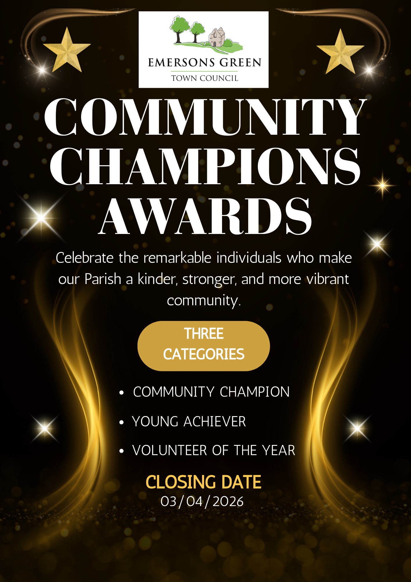 The Community Champions Awards recognise individuals who go above and beyond—whether quietly or publicly—to support neighbours, strengthen local groups, and contribute to the wellbeing of our Parish.